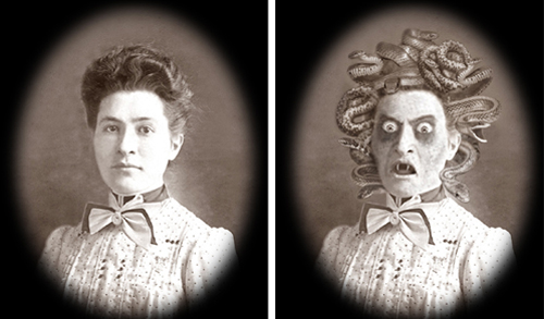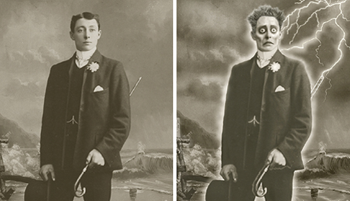 Other than taking one art class in college and a class in digital photo restoration, Mr. Allen is largely a self-taught artist. Inspired by the creepy changing portraits in Disneyland’s Haunted Mansion attraction, Edward was the first artist to create spooky lenticular changing portraits based on actual antique photographs (as opposed to painted images). Mr. Allen also drew upon his life-long love of Halloween, vampires, and ghost stories to create his macabre characters. For the past nine years, Mr. Allen’s changing portraits have been scaring people all over the world, both in private homes and in various amusement park attractions.