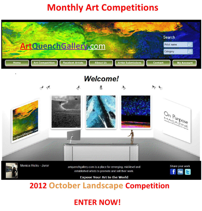The Winner of the Competition will receive one year of representation with ArtQuenchGallery.com The Winner will also receive publication in both ArtQuenchMagazine.com and On Purpose magazine. This is a great way to get exposure and a chance to have your work heavily promoted.