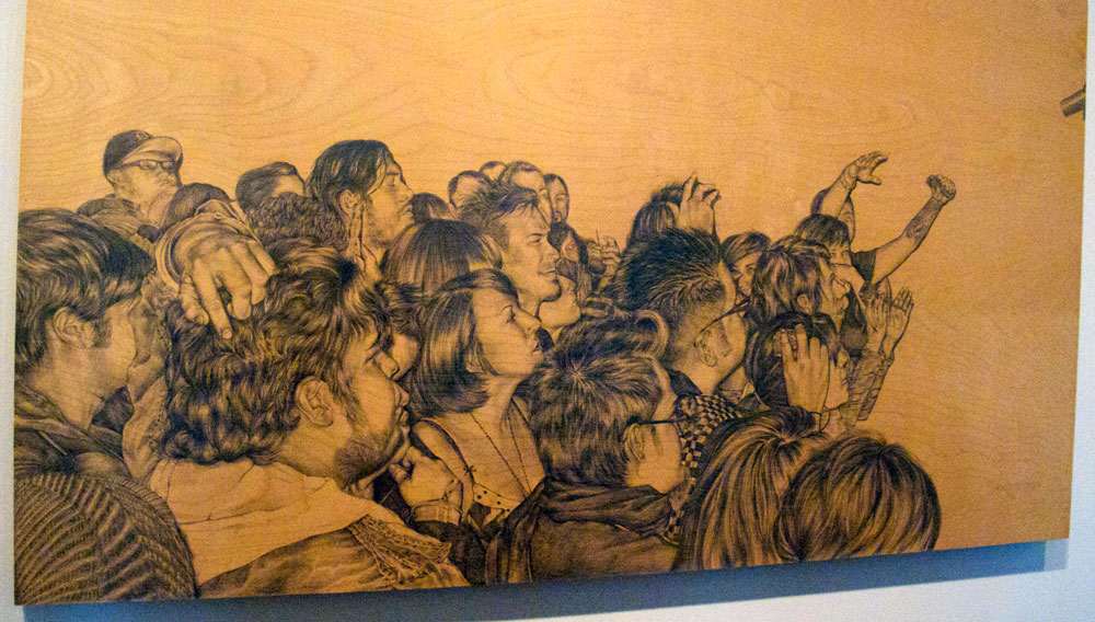 In the small gallery is the amazing work of Shizu Saldamando. Her detailed, meticulous paintings are so vivid that when you see them in person they are almost lifelike depicting diverse subcultures in Los Angeles.