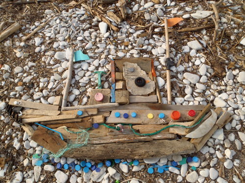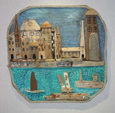 The inspiration for my work comes from the sea and the River Thames, the objects I find whilst mudlarking and beach combing, and the people who have previously owned them. I use driftwood, pottery, metal and glass in my art that have been rocked by the tide in the River Thames and the sea, some for well over one hundred years. It is like wakening them from a long sleep in order that they can share their stories and memories by stirring our imagination. These objects for me are evocative of past lives, mysteries and stories that we will never know. They are tangible pieces of history that we can hold and touch – a small link between the past and the present. Though the owners have long disappeared or have moved on, these items still have a story to tell. I love to reincarnate them and give them a new life in a piece of art. Be it a lost toy in a photograph, a fish made from fragments of ancient glass or a collage made with scraps of metal, each piece has it’s own history.