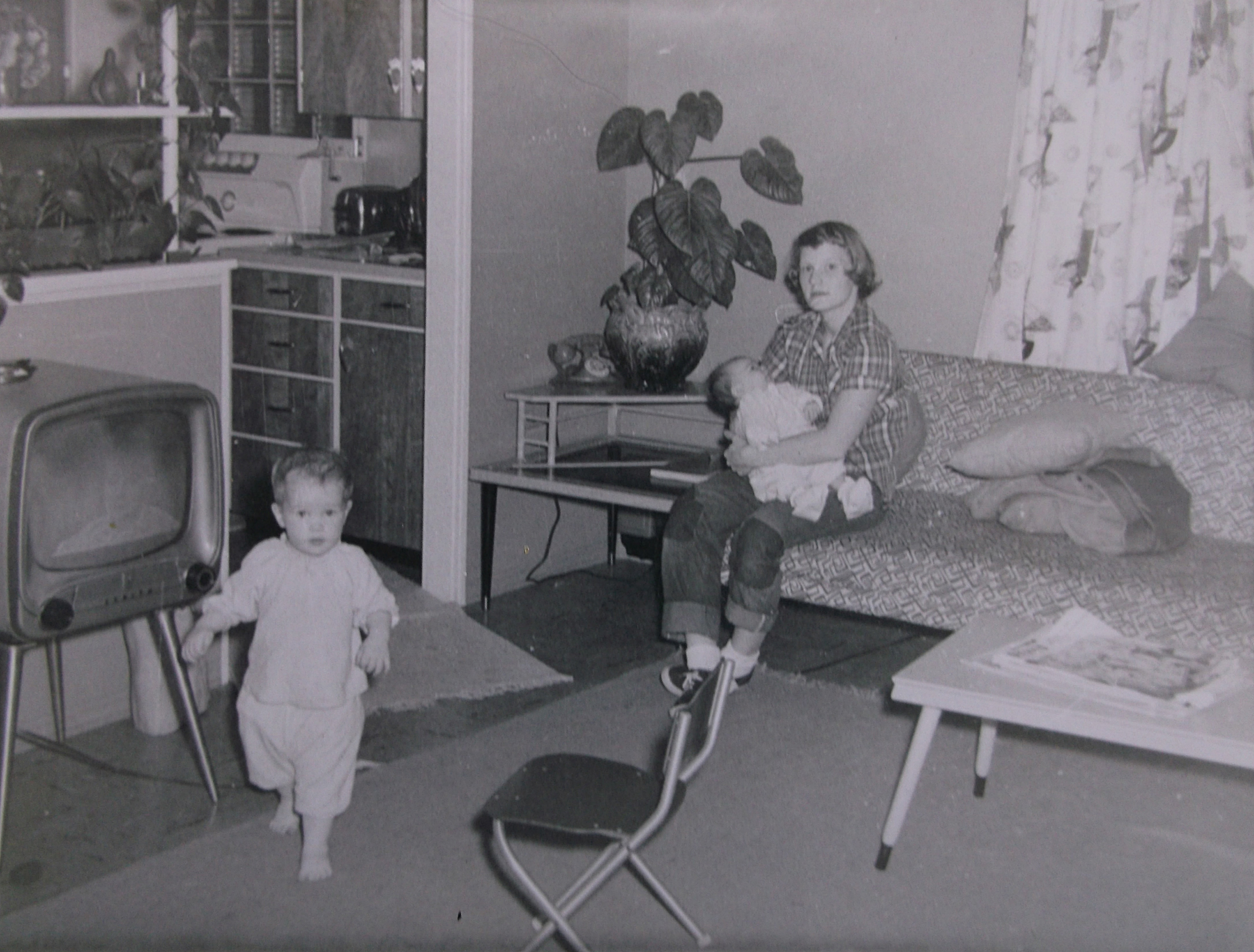 My Mom, baby sister and me along with my best friend, the TV.