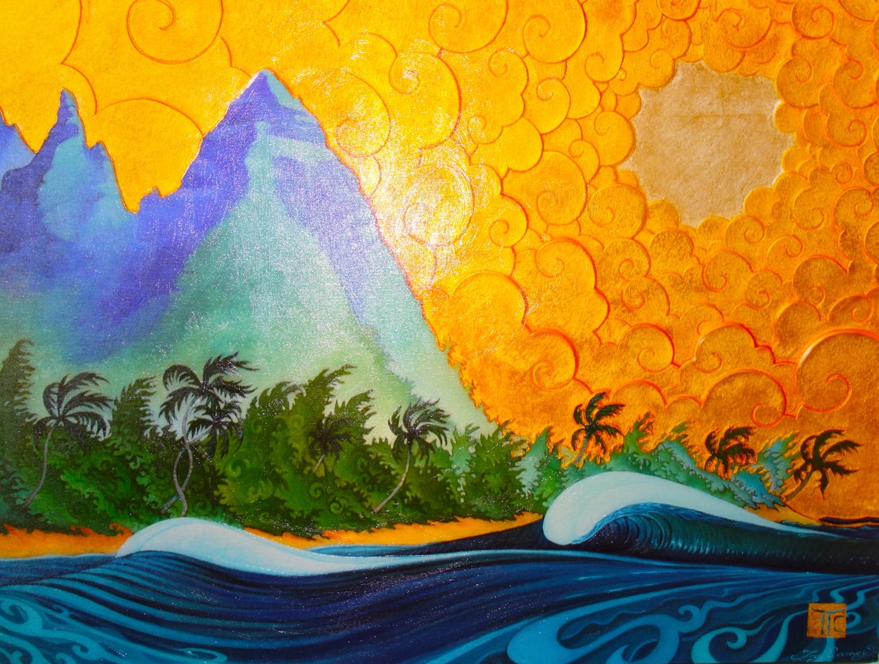 The weather in Kauai is perfect for a plein air painter. There are fantastic spots such as the Waimea Canyon which is flanked by highway 51 where lookouts are posed above a red rock valley reminding you of the Grand Canyon. Then if you go to the very end of highway 51 you are overlooking Kalalau Valley where your eye wanders to the Napali Coastline. On the North Side is the magical town of Hanalei which was once featured in a song about Puff the Magic Dragon. The views are magical even if there is no dragon.