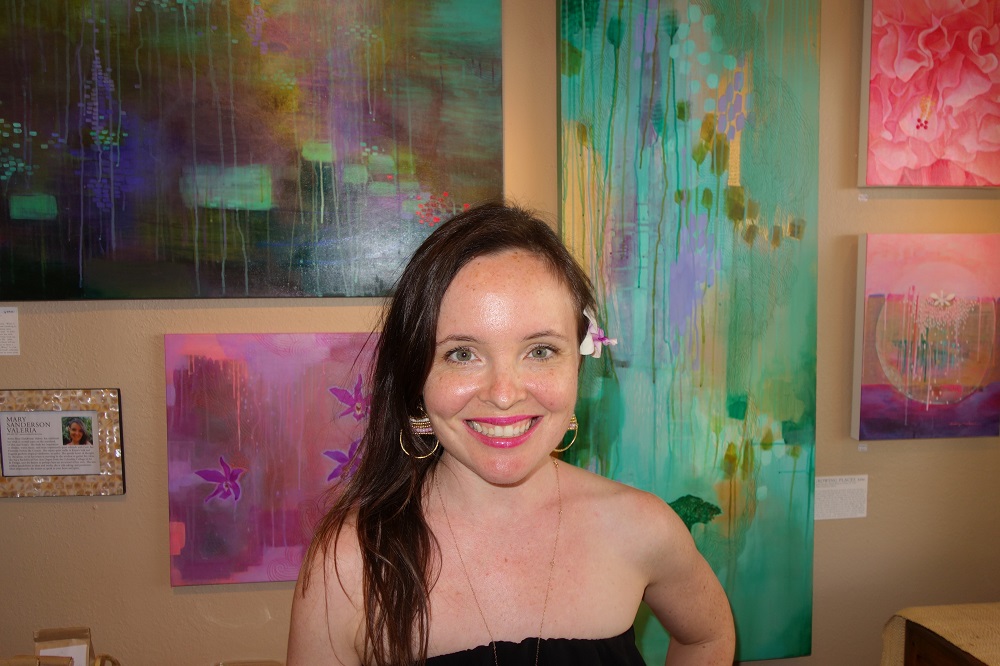 Several Artists of the Kauai Society of Artists including Katy Zeidner of www.kauaisocietyofartists.org, were painting the local street and orchid festival. Inside the gallery were the works of many local artists including Mary (Sanderson) Valeria featured with her opalescent art.