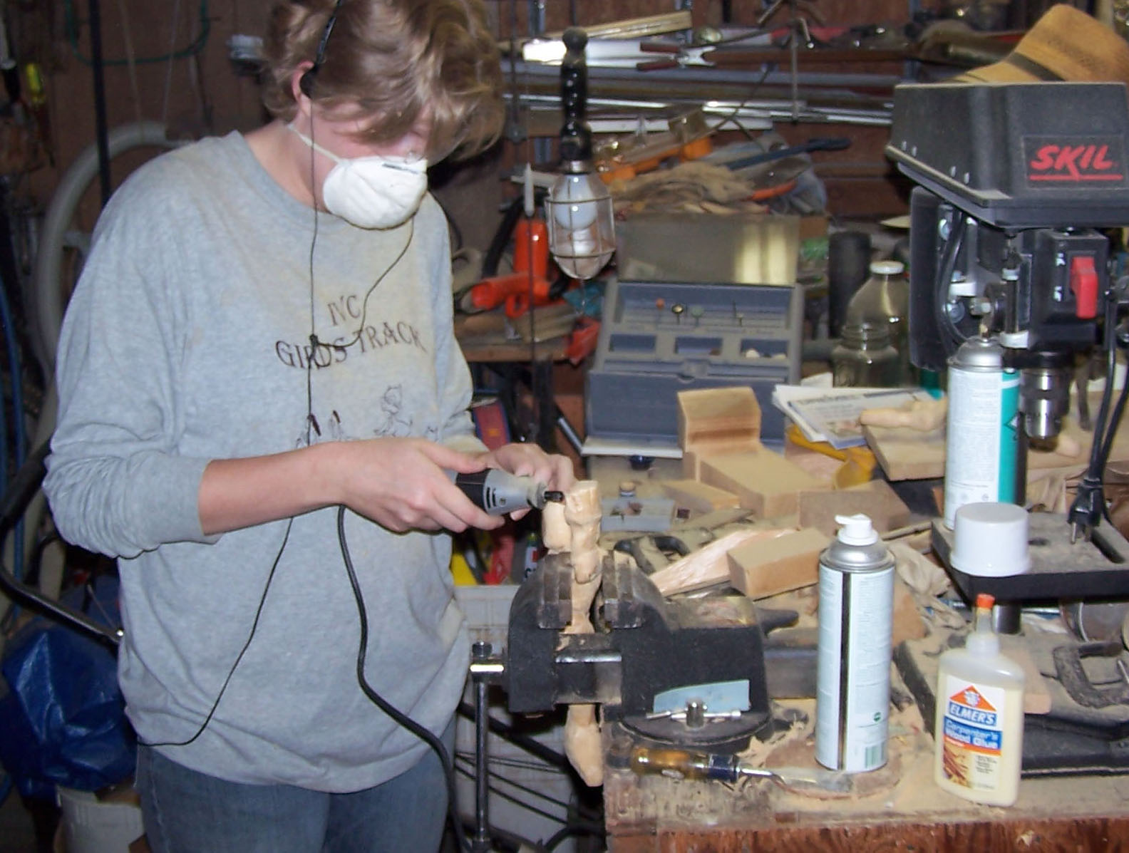 Dremel’ing out a wood sculpture in my dad’s garage 2005