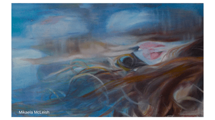 Artist is Mikaela McLeish, a San Diego-based painter known for her ethereal, large-scale oil paintings. McLeish’s work explores the tension that lies between isolation and connection, individual and society, and reality and dream.
