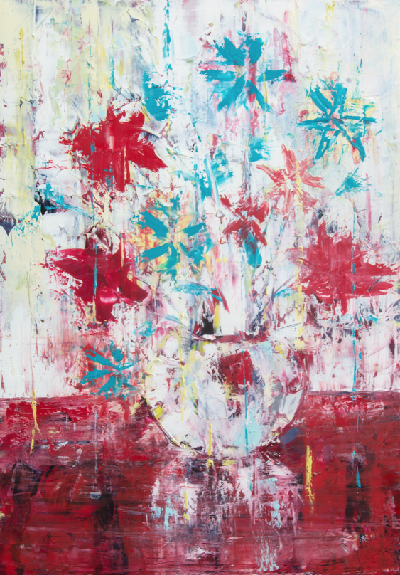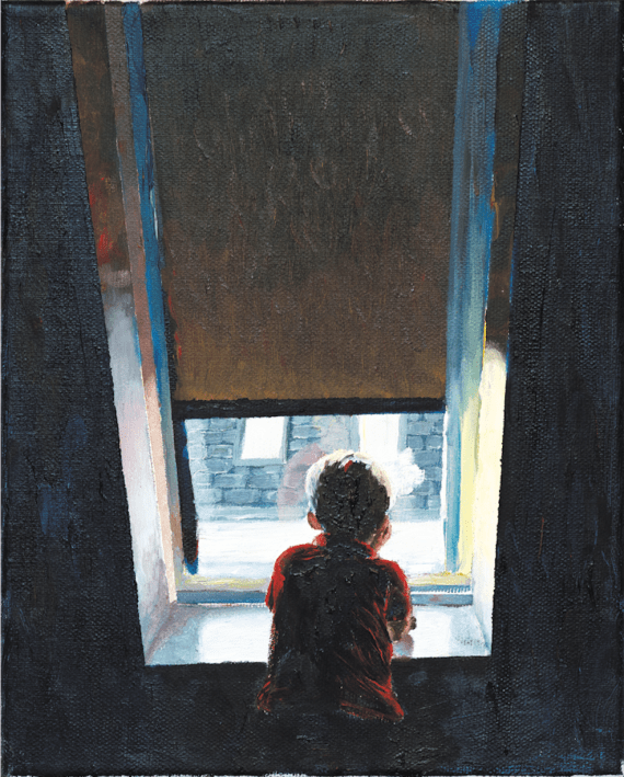 My life took another swerve in 2010 when I got married and moved to Zurich. I didn’t work at the time, and only started learning German. Decorating our house was a natural start for an artistic flashback. And of course, the new walls needed some art. I asked my sister for a picture of a red dog that she got from a small gallery in DC a few years back. But she wouldn’t part with it, so I decided to paint a copy for myself. And that’s what got me to take to the easel with new ardour. “Boy at the Window” was my next feat. I painted for fun, but friends started asking for some pieces and commissioning others. And a good friend persuaded me to go public with my growing collection. But I wouldn’t have done any of it without my husband Misha – his devotion and support helped me grow.