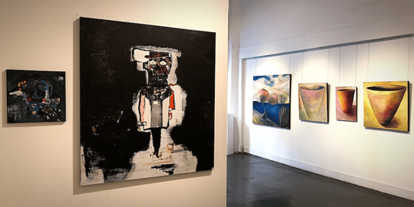 Both group exhibits offer artworks in various mediums – paintings, mixed media, photography & sculpture.