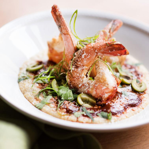 Claudia: My family is from Mazatlan, Sinaloa, where shrimp is as abundant as all of the tropical fruits and fish. I wanted to create a recipe that takes me back to my roots of using Mexican ingredients…and marry them with my very American roots. I am a proud first generation American and I love being able to make recipes that share like ingredients like Corn Grits and Shrimp in a Guajillo sauce!