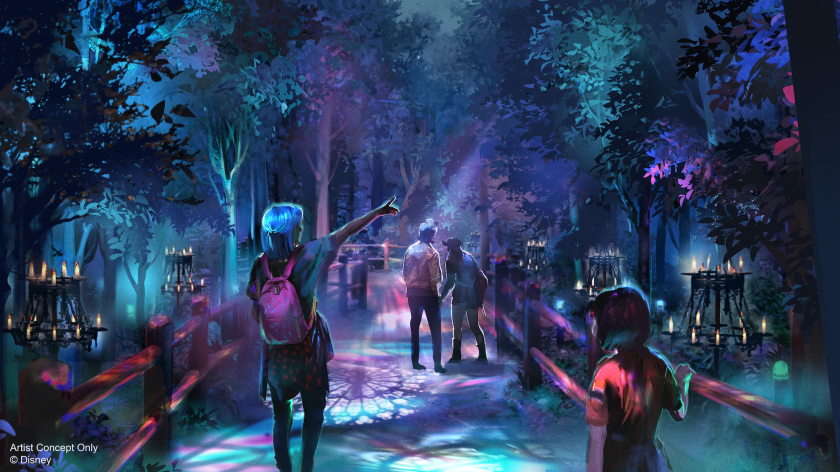 * This awe-inspiring adventure begins the moment you cross through the arched entrance, into a place where twisting vines and roots have been enchanted by the Villains. Make your way through the bewitching mist and fog—to discover unearthly possibilities on your journey: