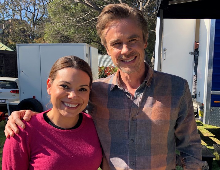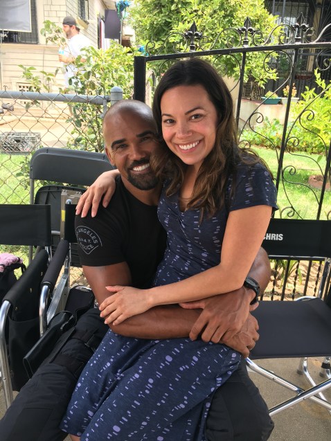 Gloria Garayua On set of Reckoning with Sam Trammell