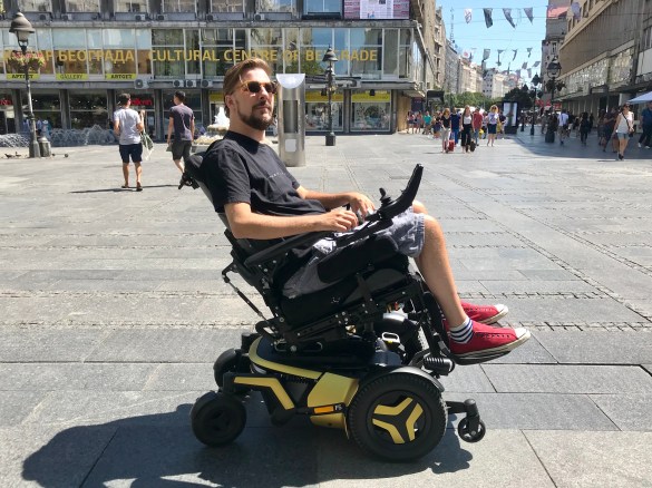 Exploring Belgrade Center in a Permobil F5 while filming a movie in Serbia.