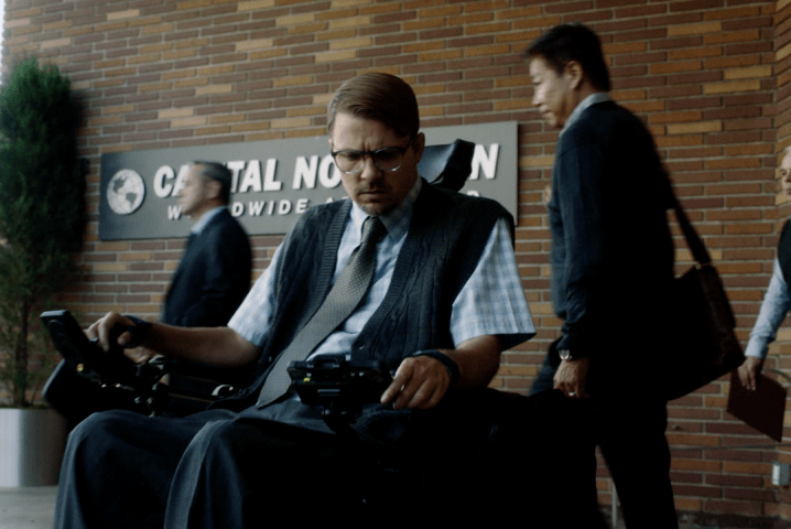 Wheelchair silhouette while driving through a mysterious tunnel in “Wisdom of The Crowd”.