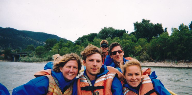 Toby with brother and sisters rafting post injury