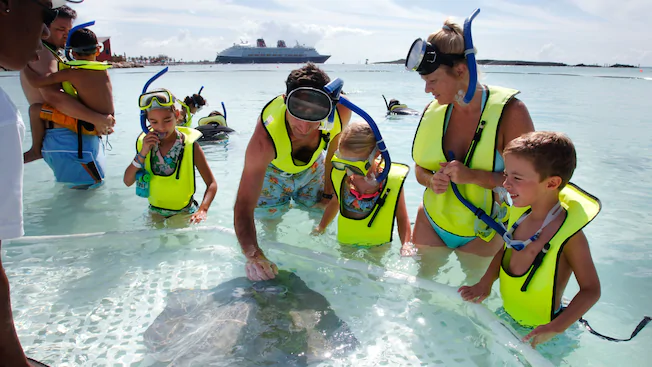 Snorkelers of all skill levels will be enchanted by the undersea realm of marine life off Castaway Family Beach. Novices can follow the Discover Trail, while more experienced snorkelers may wish to tackle the Explorer Trail. Keep an eye out for the hidden Mickey!