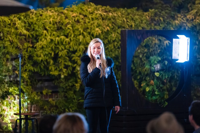 Guests dined on a delicious specialty menu under the stars and stayed warm amongst heat lamps and romantic fire pits. Actress Eugenia Kuzmina looked stunning as she performed as First Lady Melania Trump and Christine Peake shared stories of motherhood in England whist Shin shared hilarious dating stories.