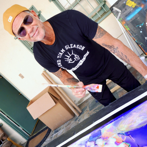 The synergy and work ethic that marks Smith’s musical life organically led to his painting, and in early 2016 Smith entered the art world with Parallax, his first collection of rhythm driven prints. Fast forward to 2019, and the Artists’ premiere of an extraordinary new collection of artwork which tours the United States in venerable galleries and venues, often following the Red Hot Chili Peppers concert tours and allowing for Artist Appearances in which the Artist has the opportunity to meet his Collectors.
